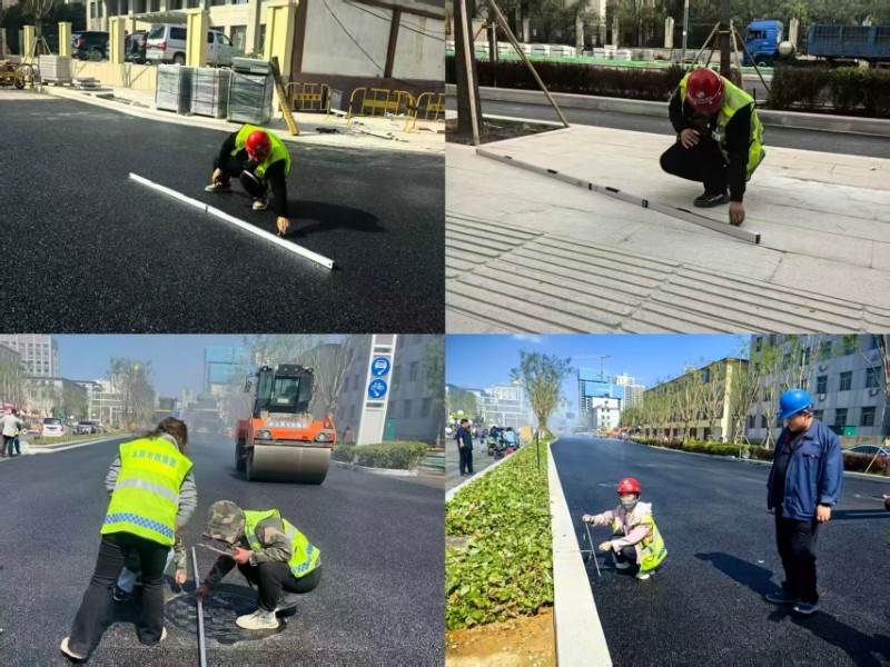 理論與實踐緊密結(jié)合,方能彰顯力量。各在建項目部積極響應,組建由項目經(jīng)理掛帥,工長、質(zhì)檢員協(xié)同作戰(zhàn)的質(zhì)量檢查小組。他們攜帶測溫儀、塞尺、鋼直尺等專業(yè)工具,深入施工現(xiàn)場,對道路面層與工程材料展開“地毯式”排查,從路面平整度到材料規(guī)格,不放過任何細微之處,將質(zhì)量管控觸角延伸至施工現(xiàn)場的每一角落,用實際行動守護工程質(zhì)量的“生命線”。